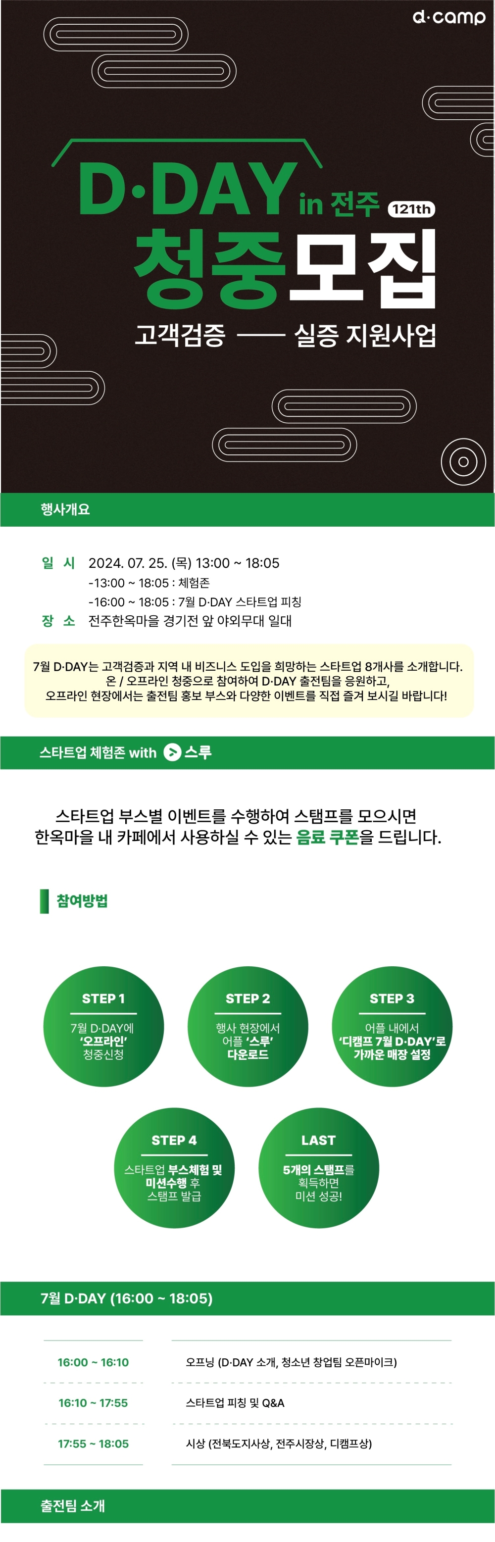 2024년 7월 D·DAY - 전주한옥마을 내 스타트업 제품/서비스 체험단 모집