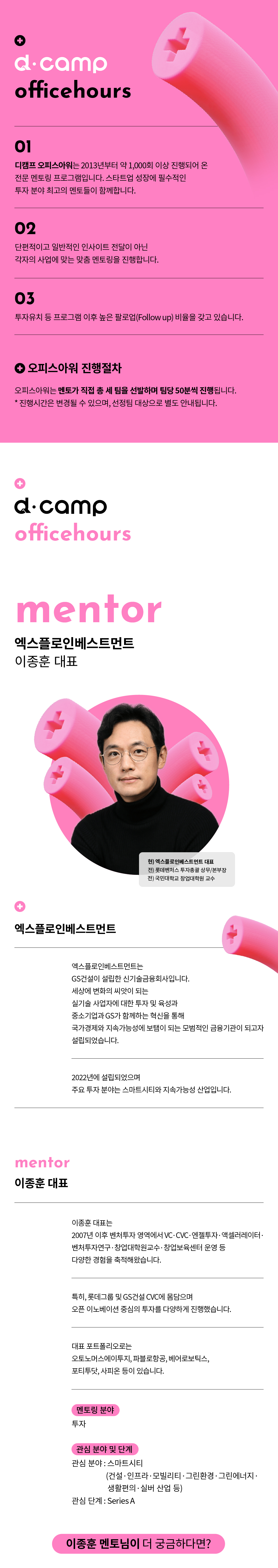 [10/2(수)│선릉] d·camp officehours with 엑스플로인베스트먼트 이종훈 대표
