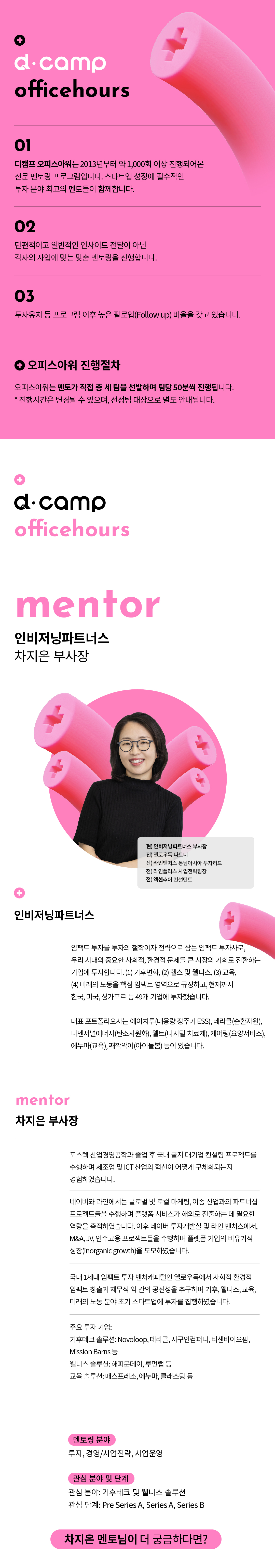 [10/30(수)│선릉] d·camp officehours with 인비저닝파트너스 차지은 부사장
