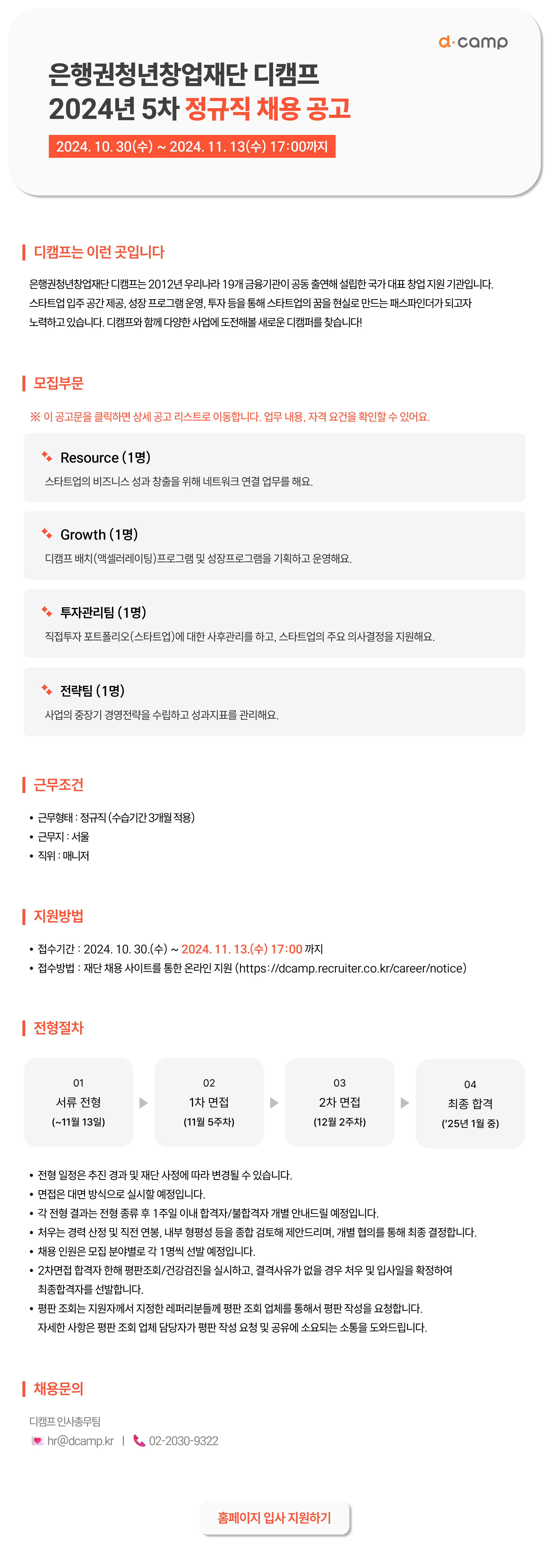2024년 제5차 디캠프 정규직 채용 (~2024.11.13. 17:00까지)